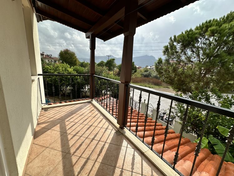 On the first floor, there are two double bedrooms, both featuring ensuite bathrooms for added comfort and privacy. The bedrooms open onto a large first floor balcony with beautiful views across the surrounding greenery and mountains, an ideal place to relax and enjoy Dalyans peaceful atmosphere.